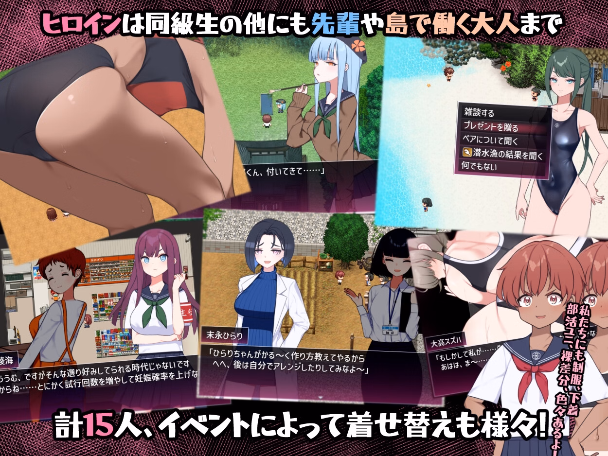 In a near-future world where a pandemic has drastically reduced the male population, humanity faces a crisis of declining birth rates. On a remote island town called Kawashima, the government has established an advanced academy where “practical sex education” has become mandatory as part of national policy. You are moved by meeting classmates of the same sex, something you’d never experienced before. You become accustomed to interacting with the unique girls and your self-sufficient life after school.