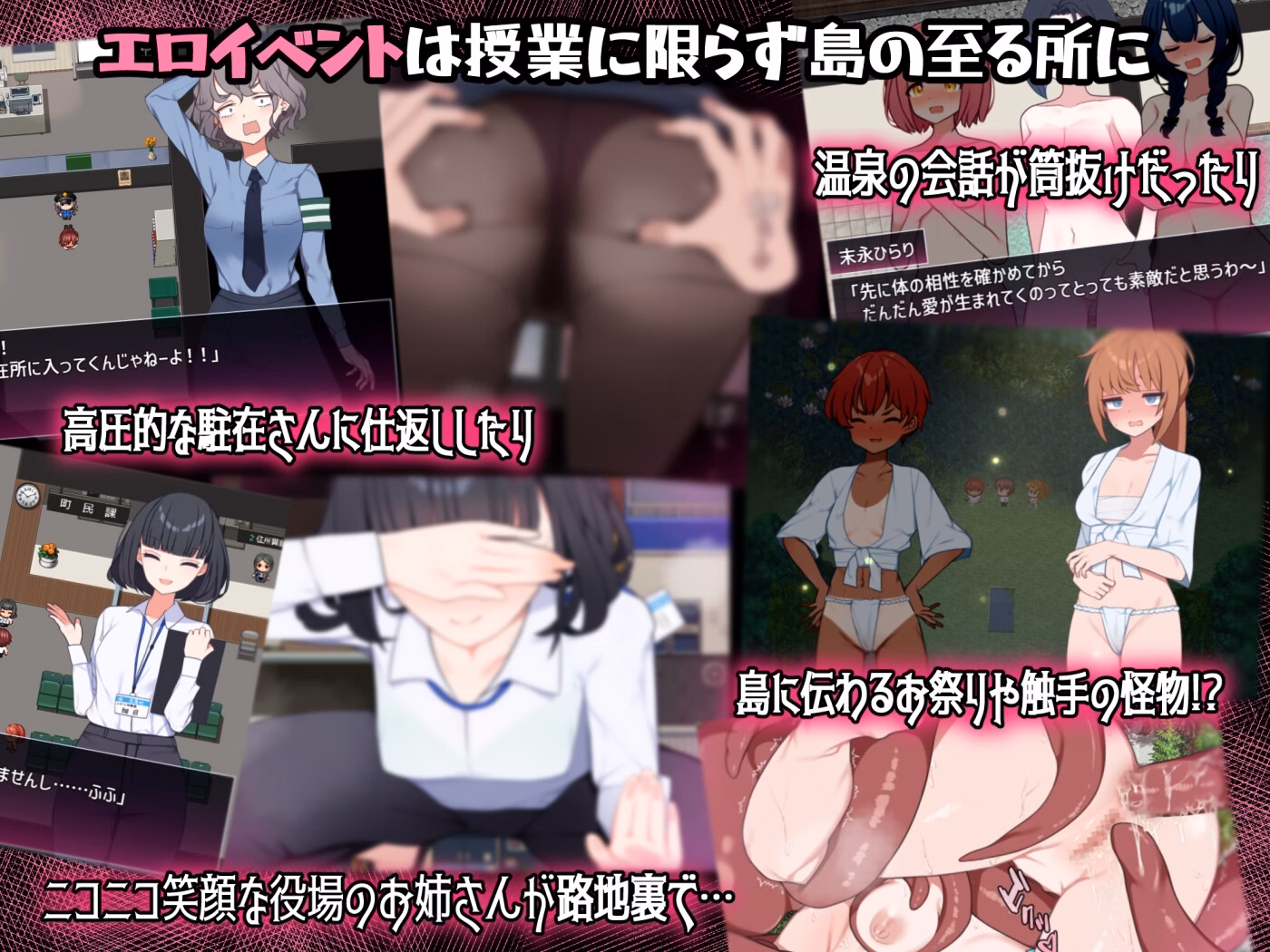 Sex Lesson Island, You play as a student who moves to the island to attend this academy. What begins as a rural slow-life of fishing, crafting, and exploring soon intertwines with unique lessons: classmates, seniors, and adults are paired for daily “practice sessions” aimed at countering depopulation.